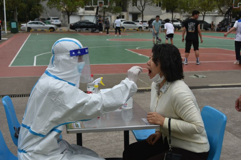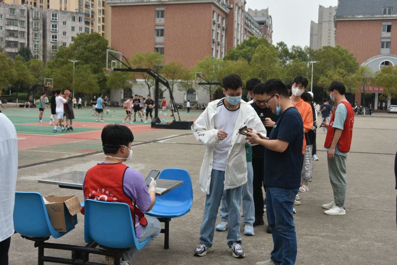 现场,不少身着红色背心的学生志愿者。“学校教工及家属众多,完成不漏一人的核酸检测对于学校来说,压力不小,多亏了这些志愿者的鼎力帮助。”校医务所曾所长表示,这些学生志愿者为学院各系大二、大三的学生,协助不太会使用智能手机的老教工完成信息登记,为人群分流、有序开展核酸检测工作提供有力支持,“有了他们的帮助,整个学校的核酸筛查工作更加井然有序”。