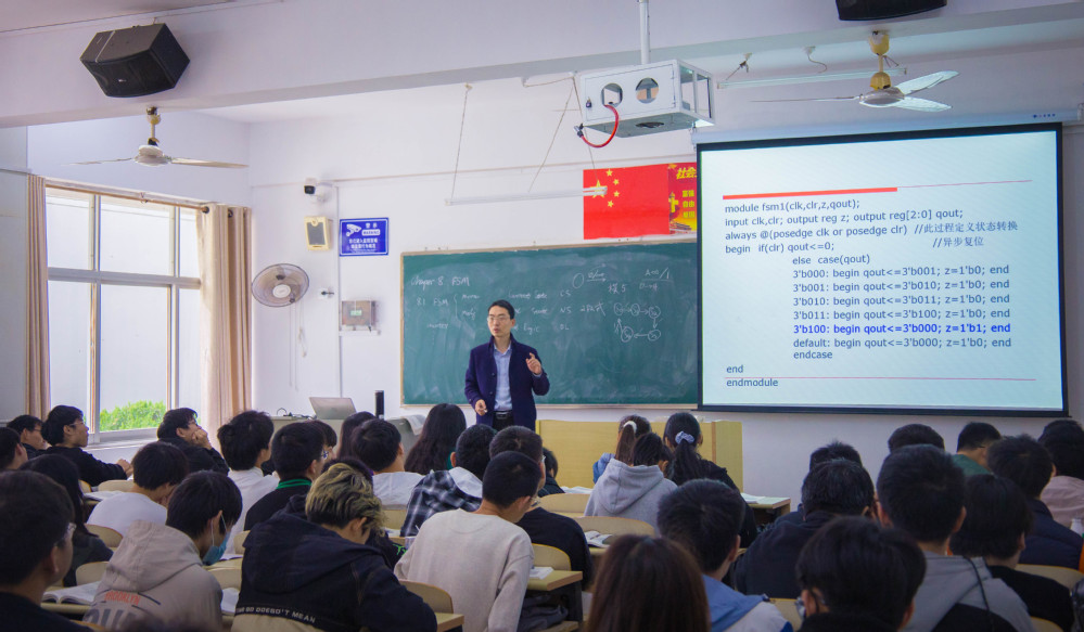 因疫情久违不见的老师与同学们仍以饱满热情的精神状态再次投入到课堂中。光影斑驳下,纸页翻动间,老师的谆谆教导与同学们的聚精会神共同构成线下教学第一天中最美的风景。