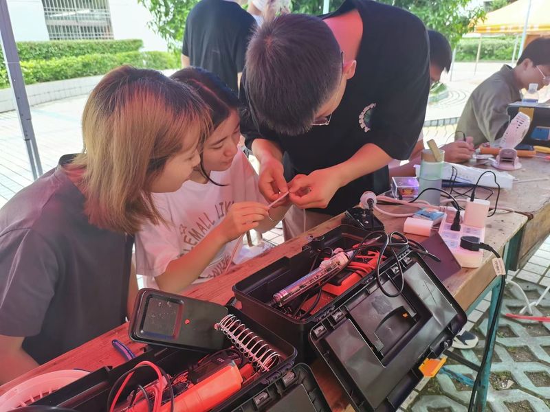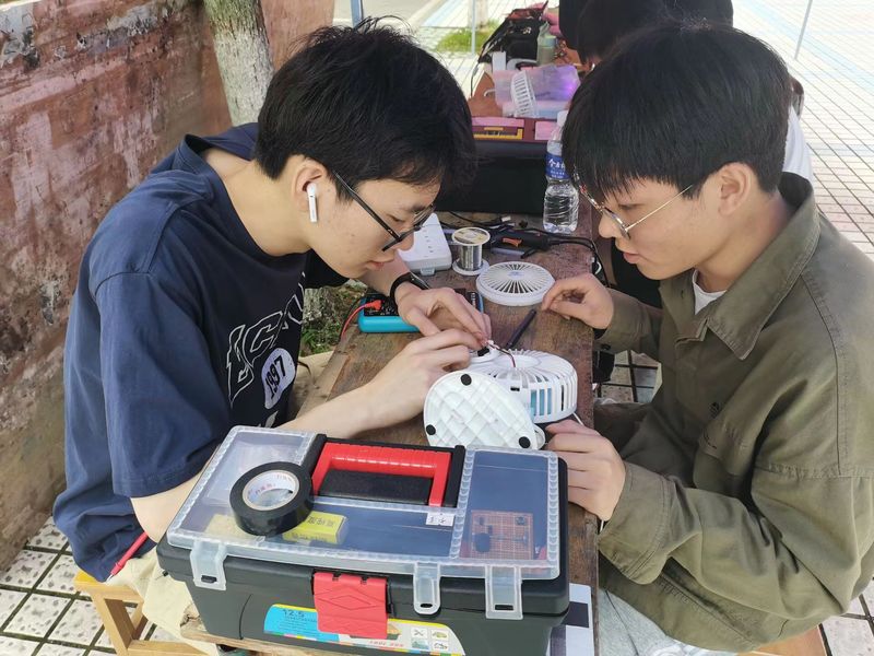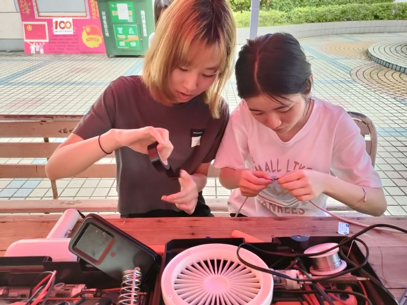 雨水虽断断续续,但前来维修的同学也络绎不绝。维修的物品主要有电风扇,电吹风,热水壶,台灯,充电宝等。活动现场气氛格外融洽,志愿者们热情地接待每一位同学,为其有序地登记电器问题,并耐心地为其解决问题,在各自擅长的领域尽力做到最好。志愿者们技术娴熟,态度认真,各司其职,实实在在为同学们解决电器的问题。尽管不是所有的电器都能如愿修复好,但志愿者们为同学服务的初心不移,使奉献、友爱、互助、进步的青年志愿者精神在青年一代中发扬光大。
