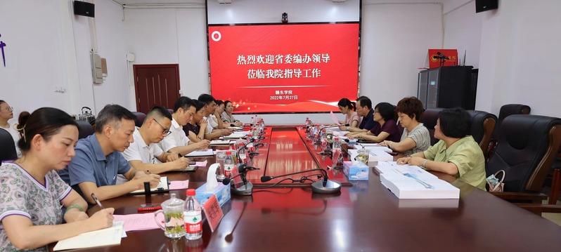 7月27日下午,省委编办一处处长、一级调研员黄永华一行莅临我院调研指导工作,省委编办一处二级调研员曾军,市委编办主任邓久泉及相关职能处室负责人陪同。学院党委常务副书记陈克胜主持座谈会。