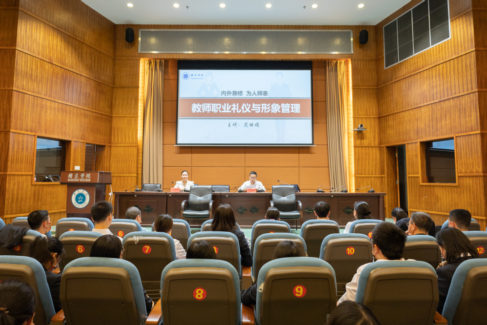 会后,根据《赣东学院“校风校纪”整治年活动的实施方案》安排,学校邀请到抚州职业技术学院范丽娟教授为教师们讲授教师职业礼仪。两个小时的专题培训,范教授用深厚的理论功底、扎实的专业素养、丰富的教学实践,让在场教师学到了许多礼仪规范,增长了新见识。