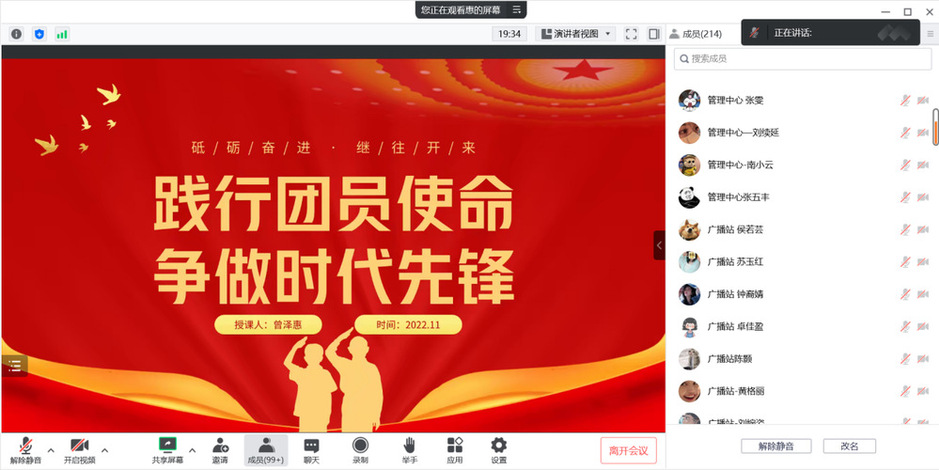 党有号召,团有行动。为发挥基层团组织的战斗堡垒作用和团员青年的先锋模范作用,2022年11月3日,赣东学院团委开展线上团课培训活动,团员代表按时进入腾讯会议参与线上培训,此次培训由学院团委老师曾泽惠以“践行团员使命 争做时代先锋”为主题进行授课。