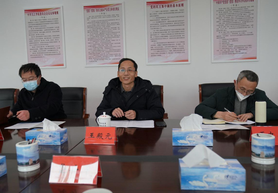 2023年1月12日,赣东学院党委委员、副院长龚升平同志率党政办公室、人事处、计划财务处一行5人赴九江学院进行学习调研。