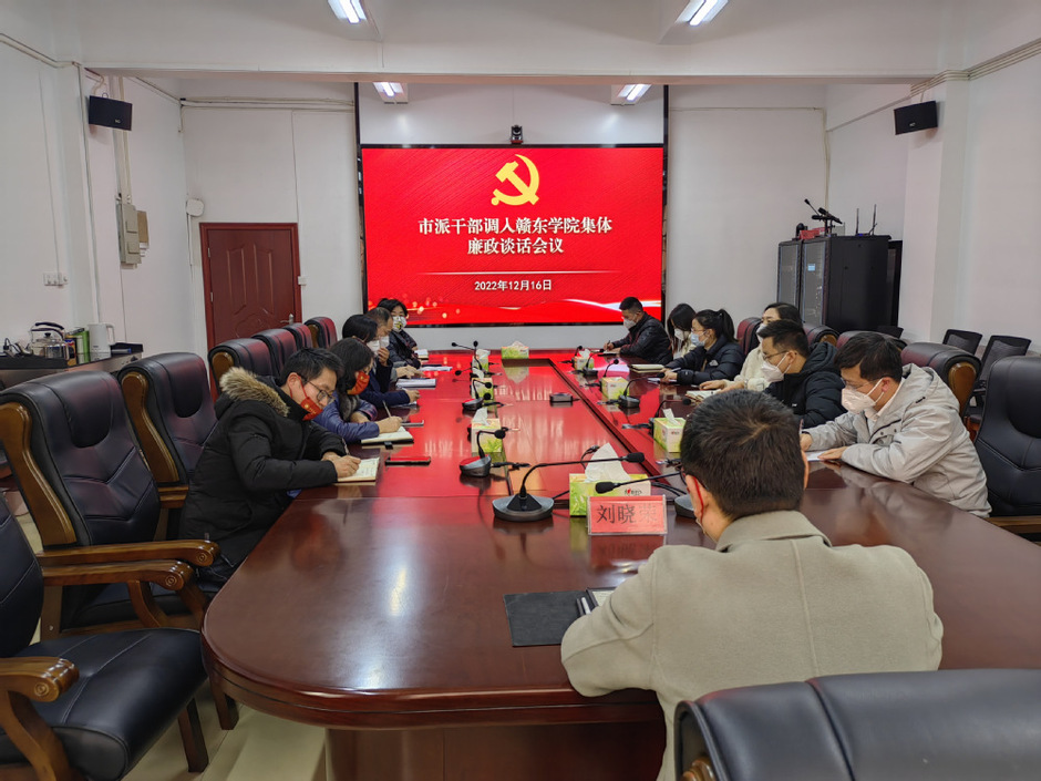 12月16日下午,学校纪委对调入赣东学院13名市派干部开展集体廉政谈话。校党委委员、纪委书记刘晓荣主持会议并讲话。