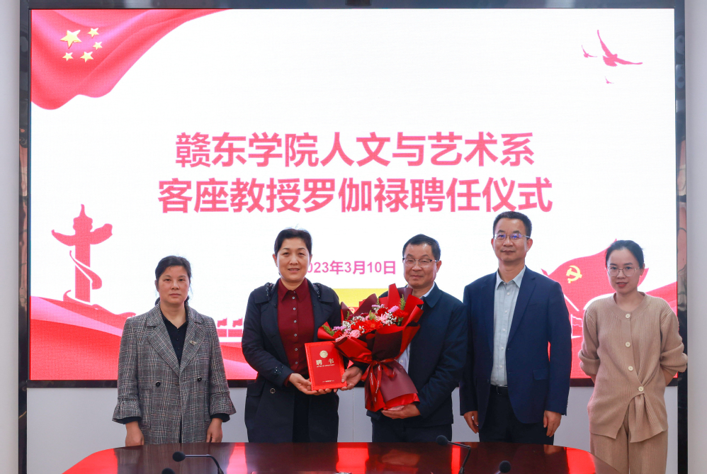 3月10日,赣东学院人文与艺术系举行客座教授罗伽禄聘任仪式,仪式由市人大常委会副主任、赣东学院党委副书记陈克胜主持,校领导龚升平,人文与艺术系行政负责人颜小英出席。