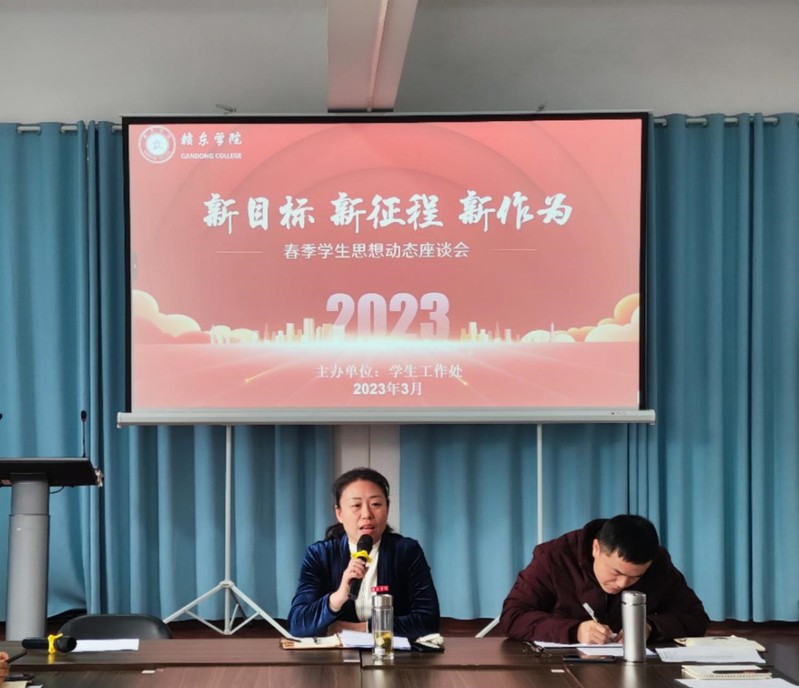 为及时掌握学生返校后的思想动态,增强新学期学生教育管理工作的针对性、实效性。3月3日上午,我院学生工作处在南区大学生活动中心召开了新学期学生思想动态座谈会。校领导周红娟出席会议并讲话。学生工作处、团委相关同志和各年级学生代表参加了座谈会。