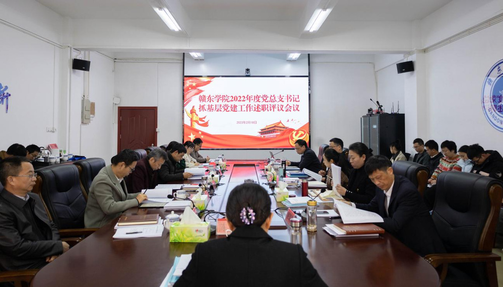2月18日,赣东学院召开2022年度党总支书记(负责人)抓基层党建述职评议考核会议。会议由校党委常务副书记陈克胜主持,院领导龚升平、谢国辉、刘晓荣、周红娟、邱剑文、蔡立出席会议,各系党总支书记、党支部书记、党委、群团部门负责同志及教职工代表参加会议。