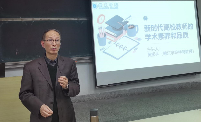 培训班邀请到学院特聘教授黄振林,为青年教师开讲第一课。黄教授以自身的从教生涯来阐述和解答“高校好老师的品德和素质”和“如何提升自己的学术素养”,全方位展示了教学育人、科研学习的全过程。黄教授的儒雅、博识、风趣、学者风范深深打动了与会老师,给青年老师们树立起了“好老师”的标杆。