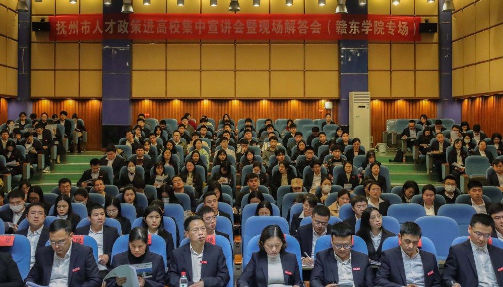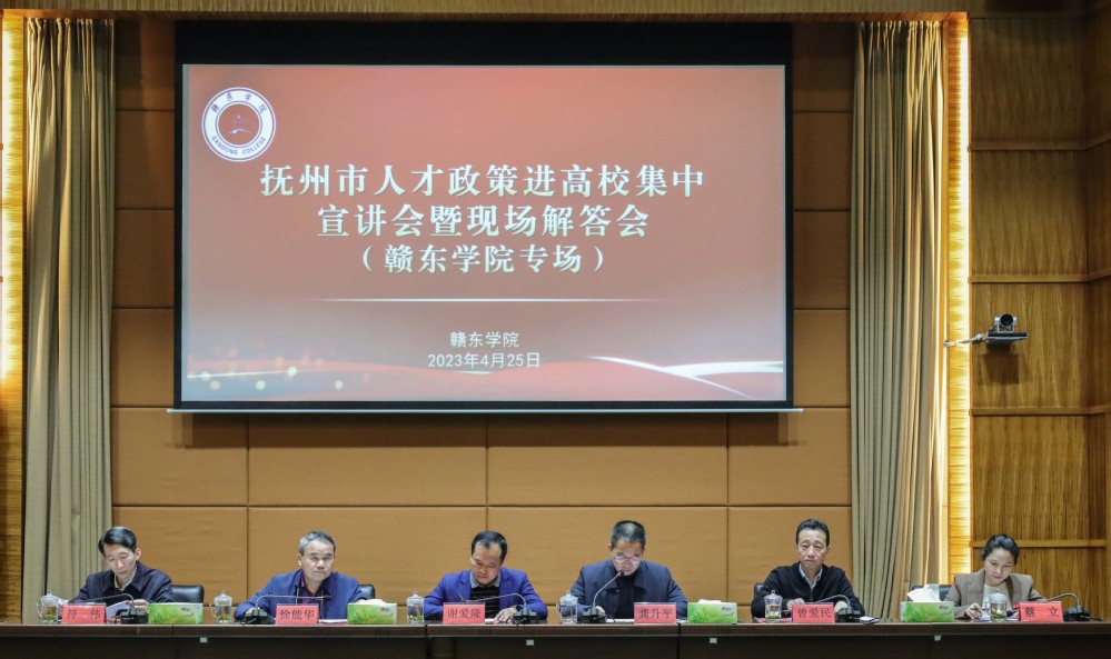 4月25日下午,由市委组织部(市委人才办)、市人社局、市科技局、团市委等单位联合举办的抚州市人才政策进高校集中宣讲会暨现场解答会赣东学院专场召开。校领导龚升平、蔡立出席。学校各系部负责人,具体从事人才相关工作的同志、部分教师及学生代表共计200余人参加宣讲活动。