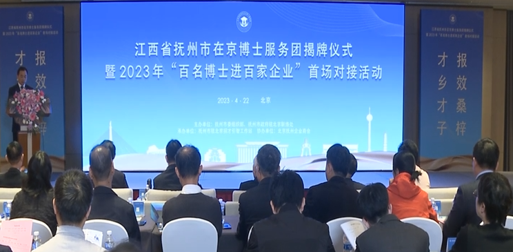 4月22日下午,江西省抚州市在京博士服务团揭牌仪式暨2023年“百名博士进百家企业”首场对接活动在北京顺利举行,校领导陈坚、蔡立,信息工程系相关负责人组团随行参加了此次对接洽谈活动。