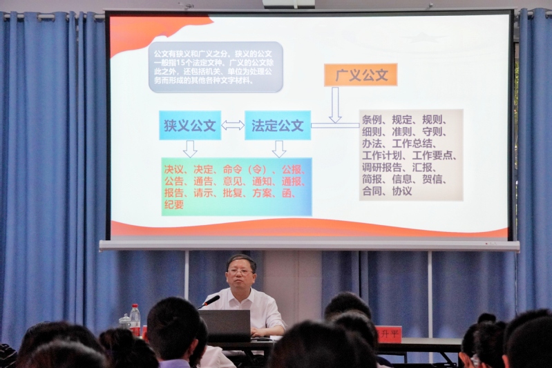 为进一步规范公文写作方式和方法,全面提升我校教职员工的公文写作水平及能力,推进我校办文质量和效率迈上新台阶,学校于5月16日在大学生活动中心举办公文写作专题培训会。校领导龚升平、蔡立出席,学校从事行政管理工作教师70余人参加培训。