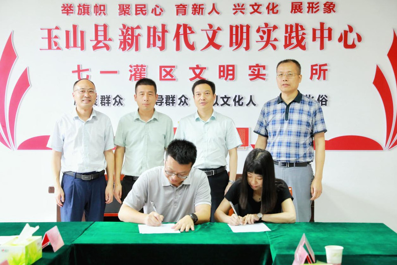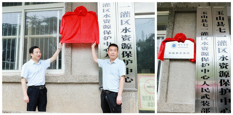 为了进一步提升我校实践教学质量和人才培养质量,强化校外实践教学基地平台建设,6月21日,我校实践教学基地揭牌仪式在玉山县七一灌区水资源保护中心举行。校领导陈坚、玉山县人民政府副县长吴承材、七一灌区水资源保护中心党组书记陈峰、应用工程系教师代表等十余人出席。