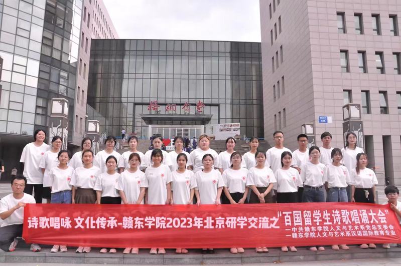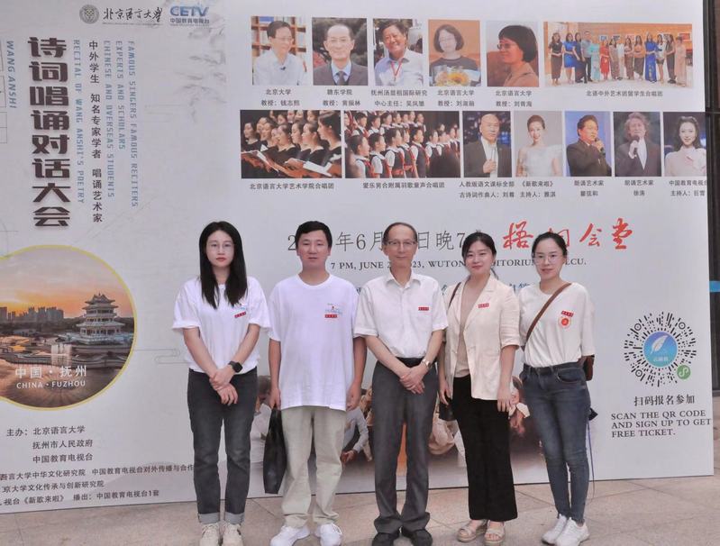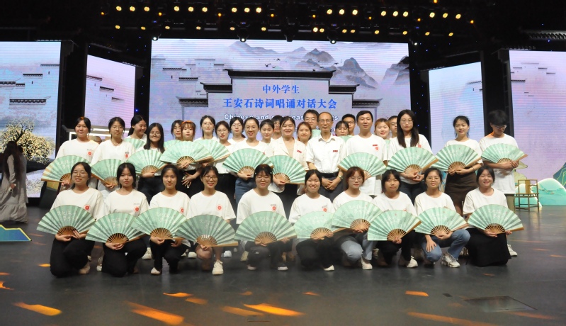 6月26日晚,赣东学院师生30余人在京参加了“百国留学生王安石诗词唱诵对话大会”。此次活动由江西省抚州市人民政府联合北京语言大学、中国教育电视台主办,活动在北京语言大学梧桐会堂举行。国内众多专家、学者、艺术家及中外学生,特别是来自32个国家的近百位留学生齐聚一堂。