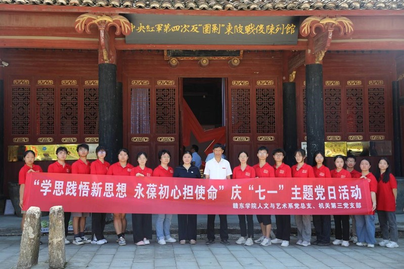 谢国辉与参加暑期社会实践的师生亲切交谈,并带领师生参观了中央红军第四次反“围剿”东陂战役陈列馆——红一方面军总部会议旧址。参观过程中,谢国辉现场讲解了“独臂将军”彭绍辉、“一块银元”等红色故事。