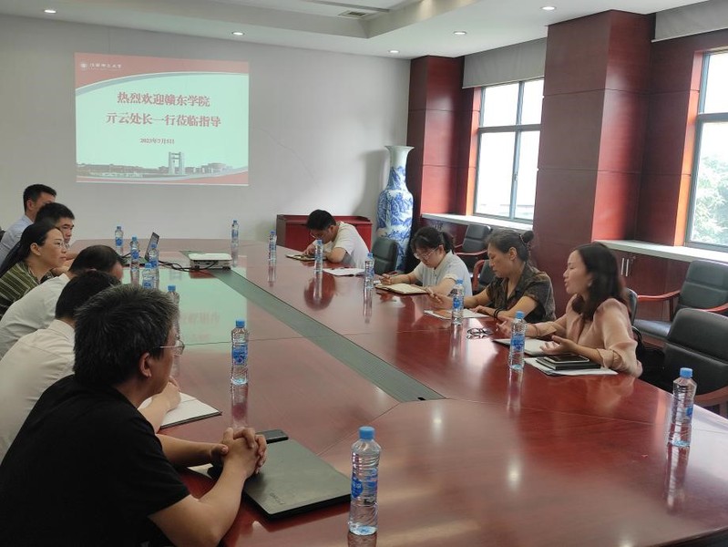 7月5日下午,校领导龚升平、蔡立带领校人事处、组织部和教务处一行来到东华理工大学进行学习调研。龚升平同志围绕当前我校人事重点难点工作与东华理工大学人事处和组织部进行了探讨。双方还就岗位设置、岗位聘任、年度考核、聘期考核、师资培训和职称评审等工作进行了深入交谈。
