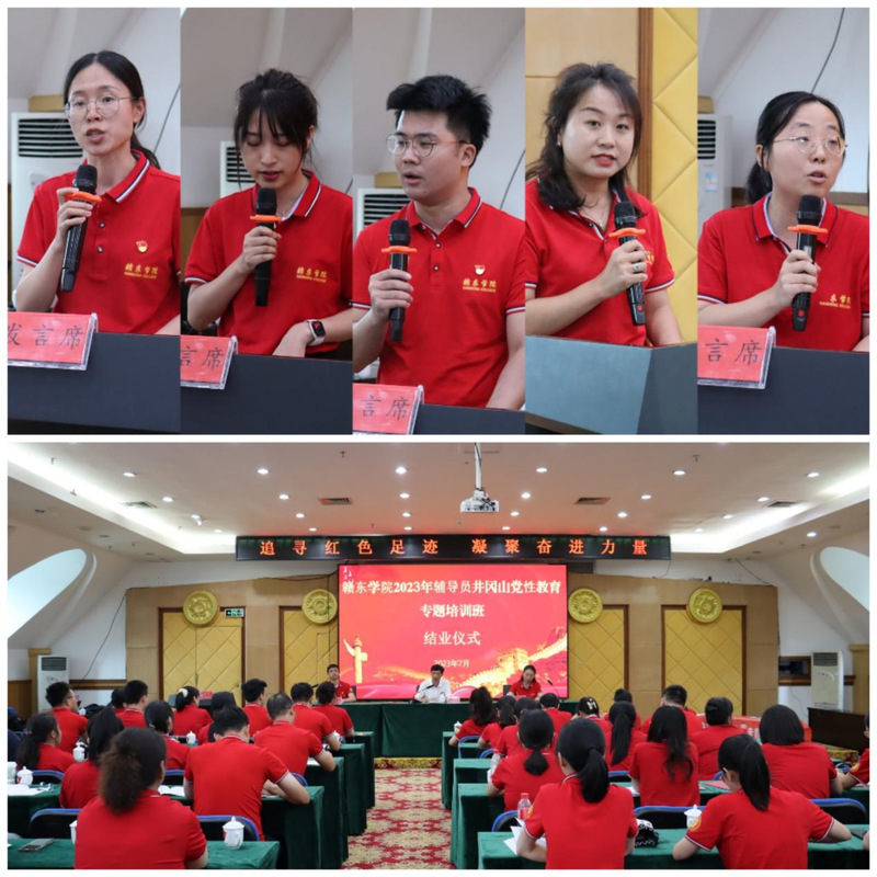7月5日至9日,赣东学院组织全体辅导员赴井冈山开展以“追寻红色足迹,凝聚奋进力量”为主题的党性教育专题培训。校领导谢国辉出席结业仪式,校领导周红娟,机械与电子工程系党总支负责人管小明全程参与培训。全体学员通过专题讲座、现场教学、真情访谈、交流讨论等形式,真切体验了井冈山革命斗争那段艰苦卓绝的峥嵘岁月,深刻领悟了井冈山精神内涵,党性得到了锤炼,思想得到了升华,灵魂得到了净化,精神得到了洗礼。