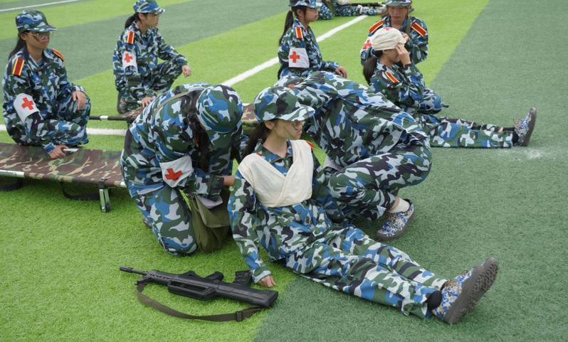 战场救护综合演练将汇报会推向了高潮。一名名“伤员”在模拟战斗环境中倒下,医疗队的学生们迅速展开救援。他们熟练地运用各种医疗设备,争分夺秒地进行抢救。其他学生则严密地组织现场,确保救援行动的顺利进行。最后,汇报会在学生们的齐声口号中落下帷幕。