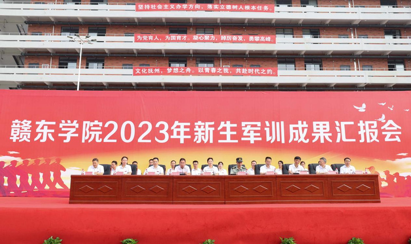 汇报会期间,我校还宣读《关于表彰2023级新生军训优秀教官、优胜连队和优秀学员的决定》,为优秀教官、优秀连队及优秀学员代表颁发荣誉证书(奖牌)以及向抚州军分区赠送锦旗。