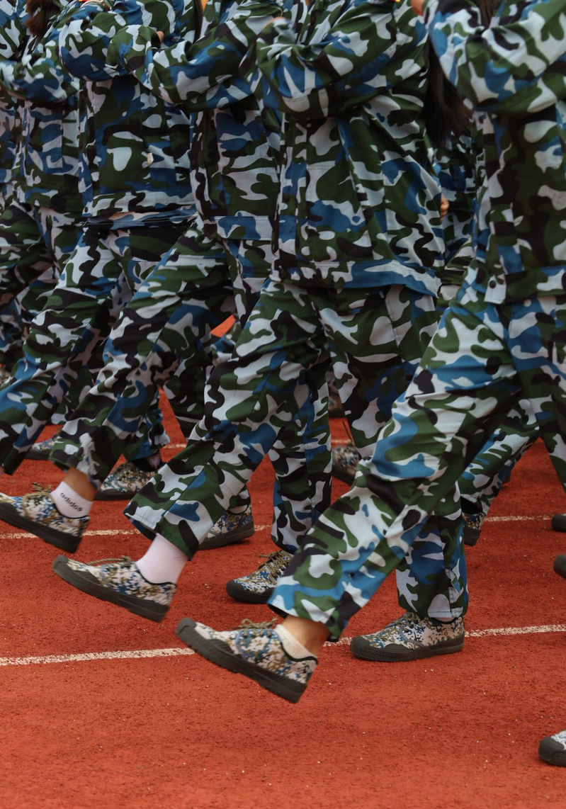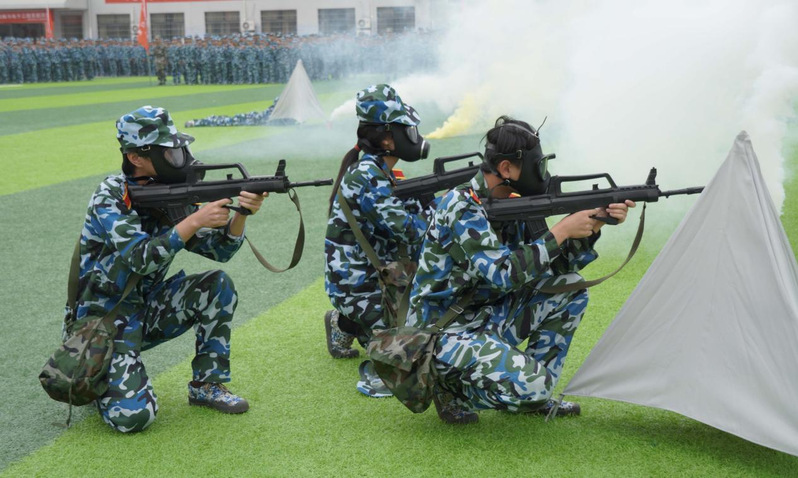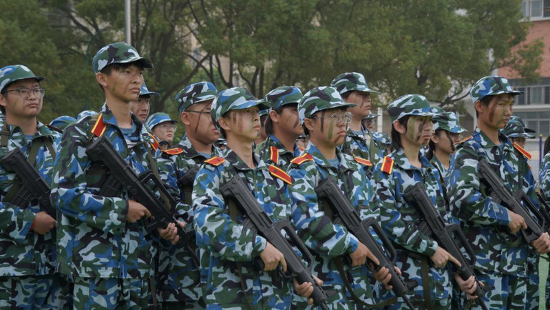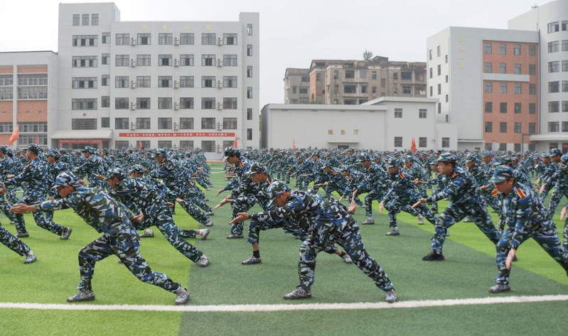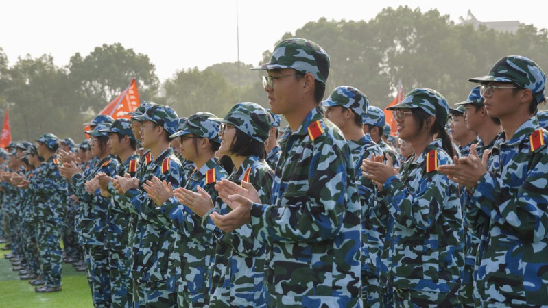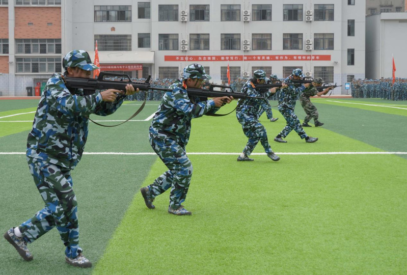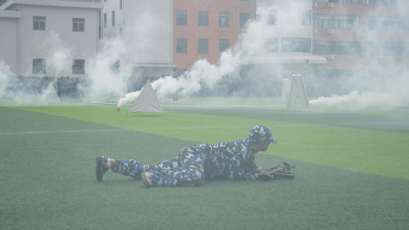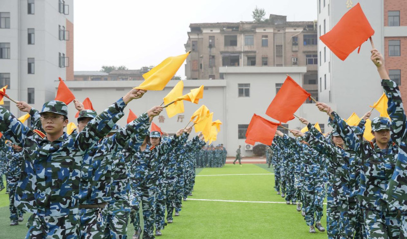 现场,近2000名学生身着迷彩服,脚踏硬地,动作整齐划一,铿锵有力,尽显雄姿英发。每一个动作、每一个转身,都精确到位,如出一辙,显示出了军训所要求的严谨和纪律。紧接着,军体拳、太极拳和擒敌拳的表演同样让人赞叹不已,学生们发力有度,身法灵活,将传统武术与现代军事技能完美结合。手旗操表演则展示了学生们在复杂环境下的沟通能力与团队协作精神,他们在空中挥舞着手中的旗帜,以标准的手势,精准的方位,传递着信息,引导着行动。