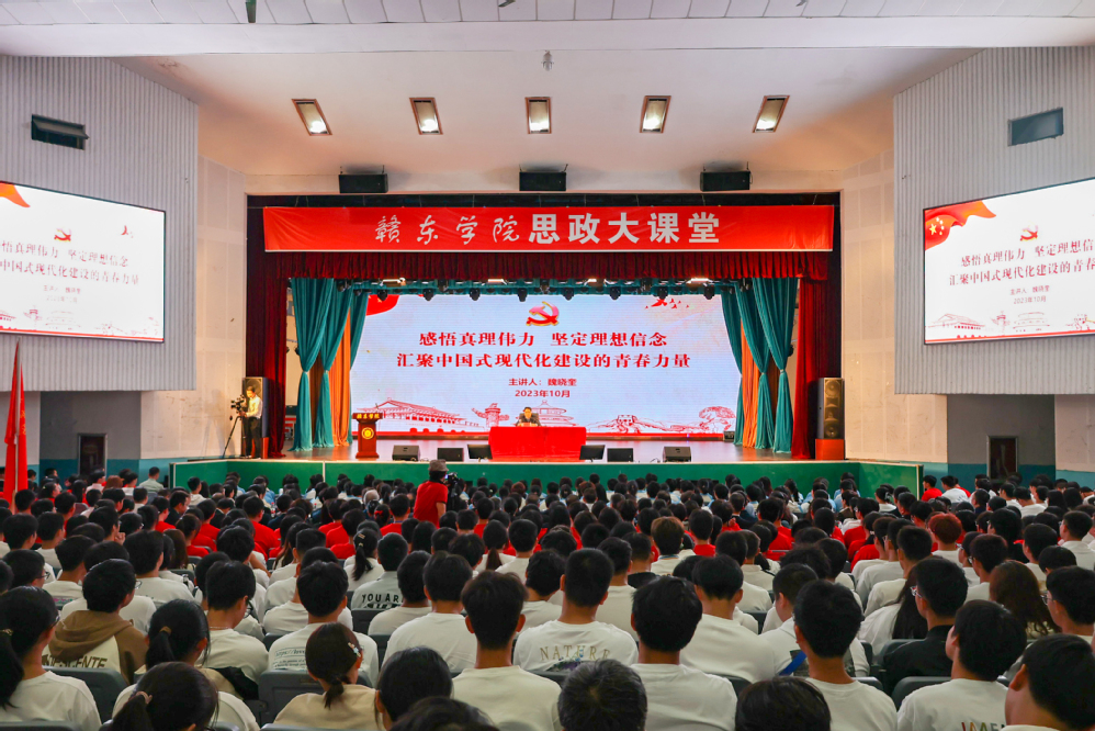 10月20日上午,在抚州全市扎实开展学习贯彻习近平新时代中国特色社会主义思想主题教育、深入学习宣传贯彻习近平总书记考察江西重要讲话精神的重要时刻,市委书记魏晓奎走进赣东学院“思政大课堂”,第一时间把党的创新理论成果、把习近平总书记考察江西的殷切嘱托融入授课内容,为全校师生带来了一堂精彩纷呈的思想政治教育课。
