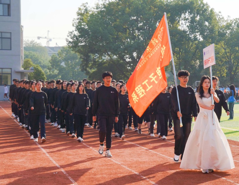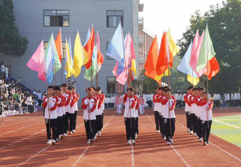 伴随着激昂的音乐,英姿飒爽的国旗护卫队整装待发,高举五星红旗,迈着坚定的步伐率先入场。气宇轩昂的校旗队、彩旗队紧随其后,各系方阵队各具特色,大放异彩,表演精彩绝伦,口号气势冲天,尽显赣东学子朝气蓬勃的精神风貌。
