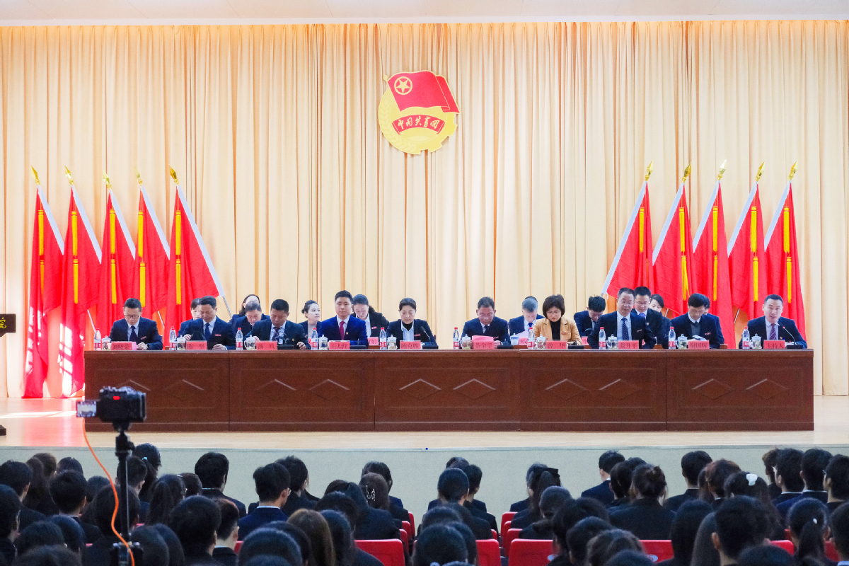 上午九时,大会在雄壮的《国歌》《团歌》中拉开帷幕,随着庄严的歌声响起,参会代表以饱满的精神面貌、坚定的目光展示了积极向上的青春活力。