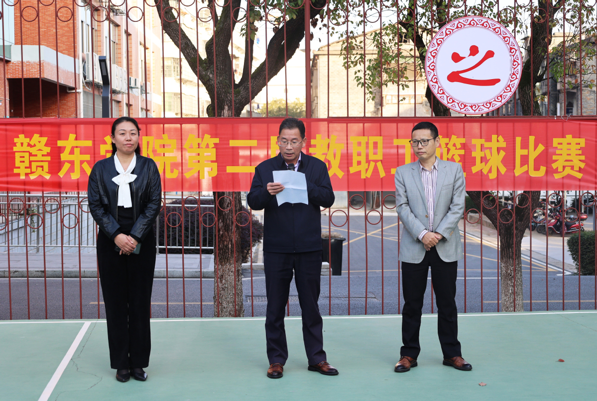 11月28日下午,赣东学院第二届教职工篮球比赛在羊城校区篮球场拉开帷幕。校党委委员、副院长茶金学出席开赛仪式并致辞,校领导刘晓荣、周红娟现场为参赛队员加油鼓劲。