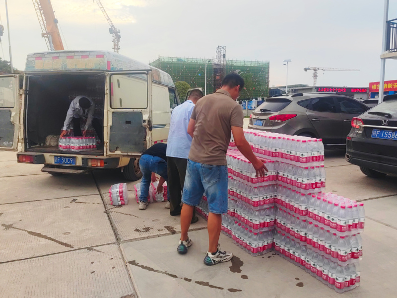 7月11日下午,赣东学院新校区,校友肖斌送来千瓶饮用水,给新校区建设现场送来夏日“清凉”。