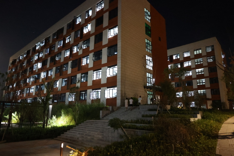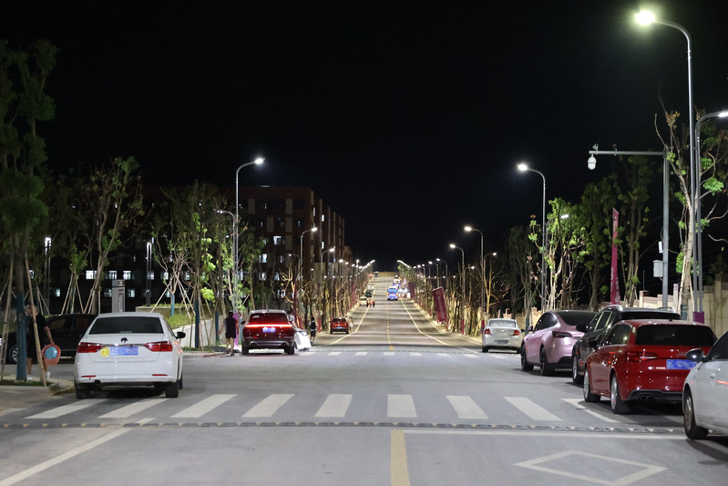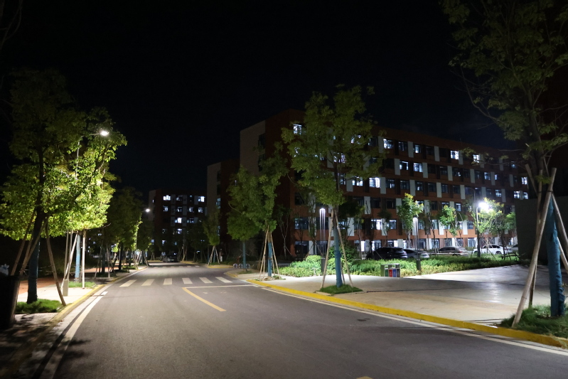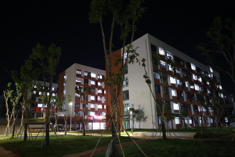 学校南大门的氛围灯,如同温暖的怀抱,欢迎着每一位归来的学子。道路两旁的路灯,则像是指引方向的灯塔,照亮他们前行的道路。宿舍楼里透出的柔和灯光,是家的温馨,是最安心的港湾。