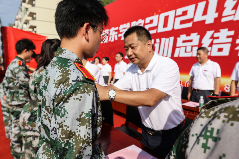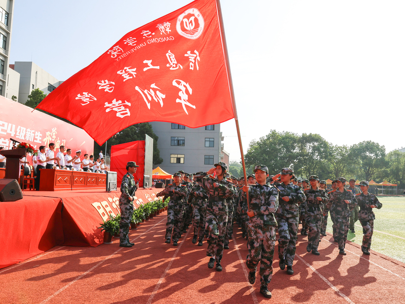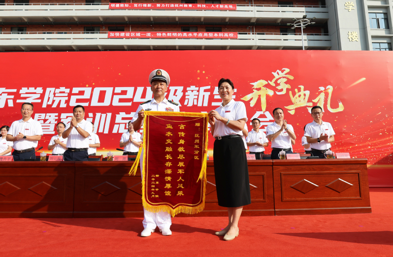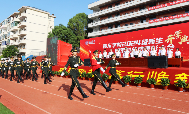9月28日上午,赣东学院2024级新生开学典礼暨军训总结表彰大会在羊城校区田径场举行。市委常委、抚州军分区司令员刘涛出席,校党委书记陈克胜向抚州军分区赠送锦旗,党委副书记、校长刘云海作开学典礼讲话。党委委员、副校长茶金学主持,全体在家校领导班子成员,各二级学院党政负责人,各部门各单位负责人,教师代表、学生代表,2024 级新生辅导员、班主任,2024 级全体新生、教官2000余人参加。
