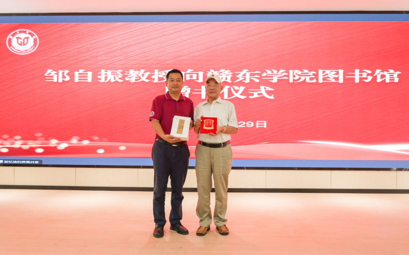 随后还举行了邹自振教授向赣东学院图书馆赠书仪式,刘云海对邹自振教授心系赣东学院发展表示衷心感谢,并为其颁发捐赠证书。