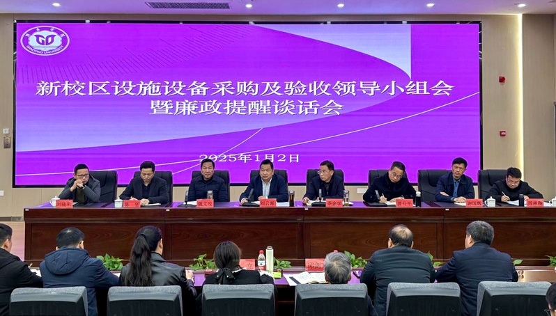 1月2日上午,我校召开新校区设施设备采购及验收领导小组会暨廉政提醒谈话会。校党委副书记、校长刘云海讲话,党委委员、副校长茶金学主持,党委委员、纪委书记魏文攻作廉政提醒谈话。