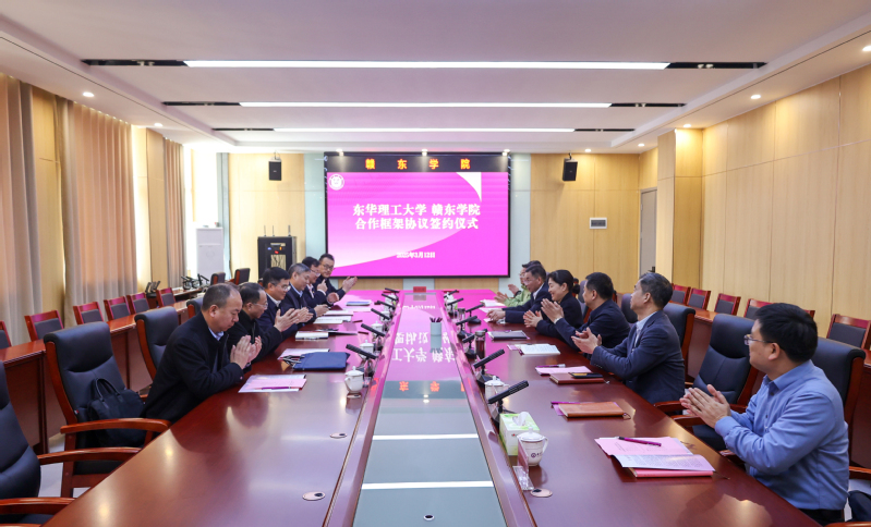 3月12日,东华理工大学与赣东学院合作框架协议签约仪式在明德楼举行。东华理工大学党委书记张福庆,赣东学院党委书记陈克胜致辞。东华理工大学党委副书记、校长罗仙平与赣东学院党委副书记、校长刘云海共同签署协议。赣东学院党委委员、副校长茶金学主持仪式。东华理工大学党委常委、副校长杨波,赣东学院副校长李勋参加。