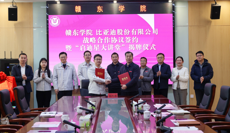 比亚迪抚州园区与赣东学院同一年诞生,共同见证着抚州这座文化古城与产业新城的蓬勃发展。此次战略合作协议的签署,是赣东学院深化产教融合、推进应用型大学建设的重要里程碑,也是比亚迪集团履行社会责任、助力教育事业发展的生动实践。相信在双方的共同努力下,校企共同打造“启迪星大讲堂”,推进双师型队伍培养、加强人员培训与交流、扩大校园招聘等领域的合作必将结出丰硕成果,为区域经济社会高质量发展做出新的贡献。