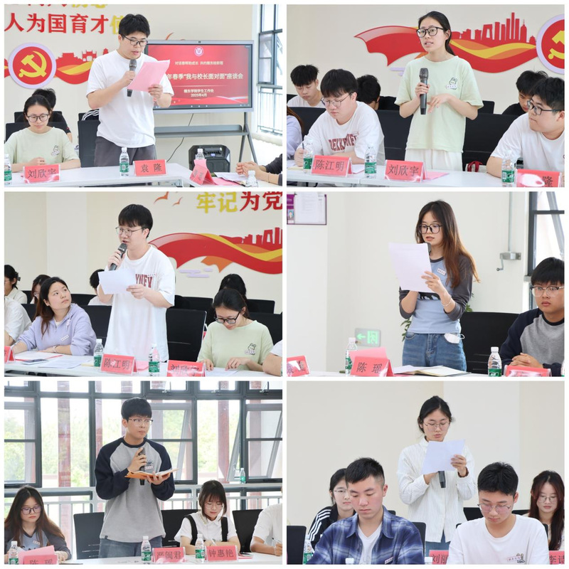 4月11日上午,我校2025年春季“我与校长面对面”座谈会在学校“一站式”学生社区顺利举行。校党委副书记、校长刘云海出席并讲话,党委委员、副校长茶金学主持会议,学生工作处、教务处、招生就业处、后勤与保卫管理处、团委、创新创业学院等部门负责人及学生代表参会。