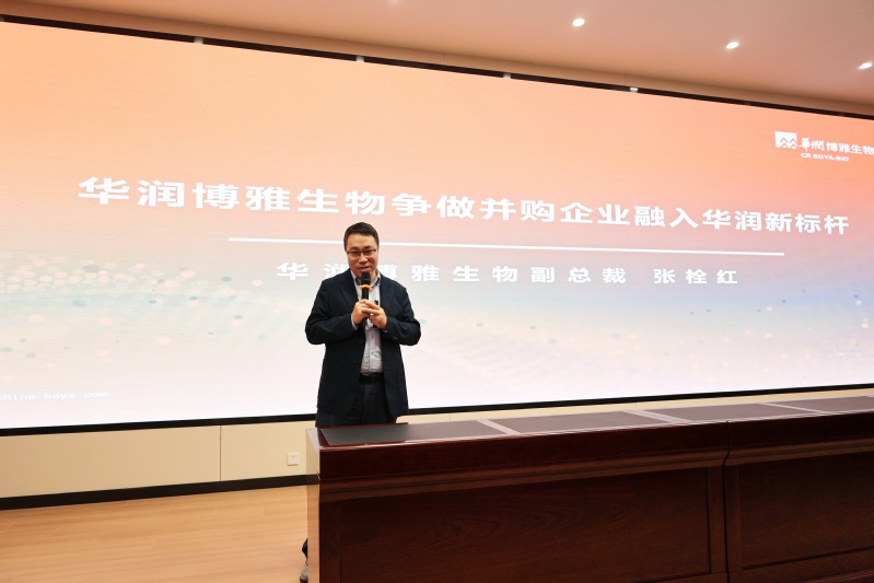张栓红以“华润博雅生物——争做并购企业融入华润新标杆”为主题,开展了一场精彩纷呈的分享,他详细讲述了华润医药收购博雅生物后,华润博雅生物进行精神重塑、业务重塑、组织重塑和文化重塑这四个关键层面所进行的深刻改革过程。