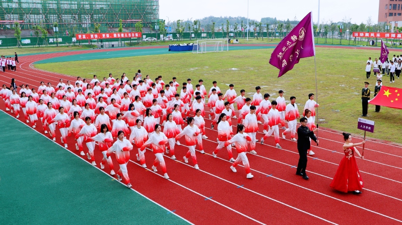 刘云海寄语师生以运动会为契机践行体育精神。他表示,体育是“文明其精神,野蛮其体魄”的生动实践,是与“在体育锻炼中享受乐趣、增强体质、健全人格、锤炼意志”的交相辉映,更是“更快、更高、更强、更团结”精神的载体。他以全红婵、苏炳添、谷爱凌、樊振东等体育健儿为例,勉励师生将竞技精神融入学业与生活,以“自信人生二百年”的豪情拥抱挑战,用“长风破浪会有时”的信念凝聚奋进力量。