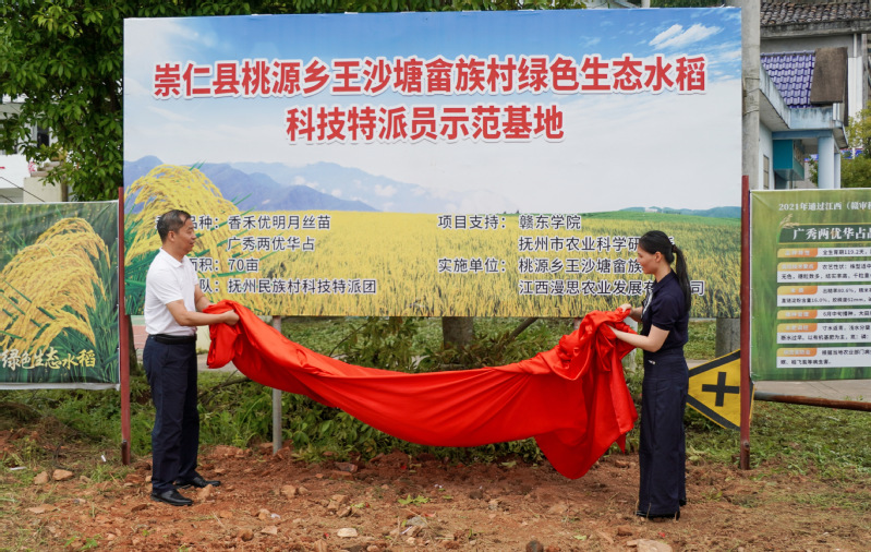 座谈结束后,揭牌仪式隆重举行。随着红绸缓缓落下,“绿色生态水稻示范基地”展露眼前,标志着畬族村在绿色生态水稻种植领域迈出关键的一步。随后,特派团向村民赠送绿色水稻种子,村民们脸上洋溢着对丰收的期待。