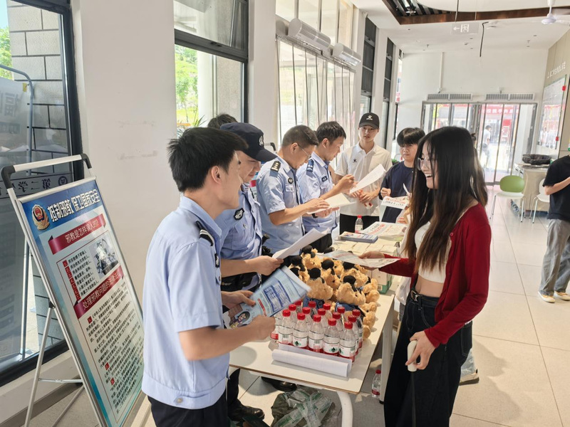 中午时分,学生们陆续来到食堂,很快被活动现场吸引。民警们通过多种方式展开宣传教育,他们设置了宣传展板,上面展示着各类常见的诈骗手段和防范方法,如网络购物诈骗、兼职诈骗、电信诈骗等,生动的案例和详细的讲解让学生们对诈骗有了更直观的认识。同时民警们向过往学生发放精心制作的反诈宣传手册,手册内容简洁明了,涵盖了丰富的防诈骗知识,便于大家随时翻阅学习。现场还进行了有奖问答环节,学生们积极参与,现场气氛热烈,同学们在轻松愉快的氛围中巩固了所学的反诈知识。一位参与活动的学生表示:“这次活动非常有意义,通过民警的讲解和有奖问答,我对诈骗有了更深刻的认识,也学会了很多防范诈骗的方法。以后我会更加小心,避免上当受骗。”