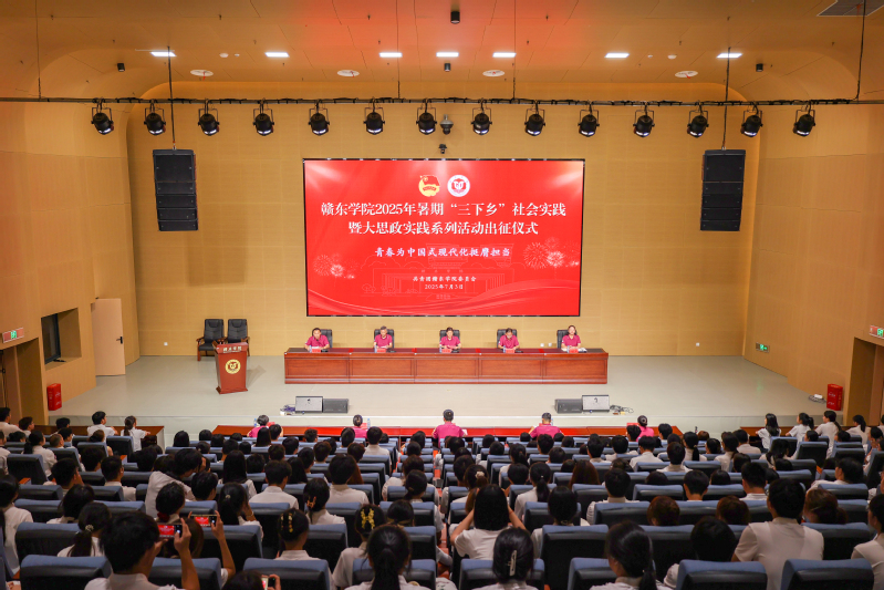 7月3日上午,赣东学院2025年暑期“三下乡”社会实践暨大思政实践系列活动出征仪式在大学生活动中心400人报告厅举行。