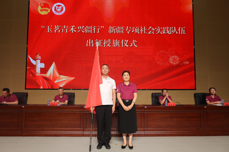 陈克胜为新疆专项实践队伍代表授旗。