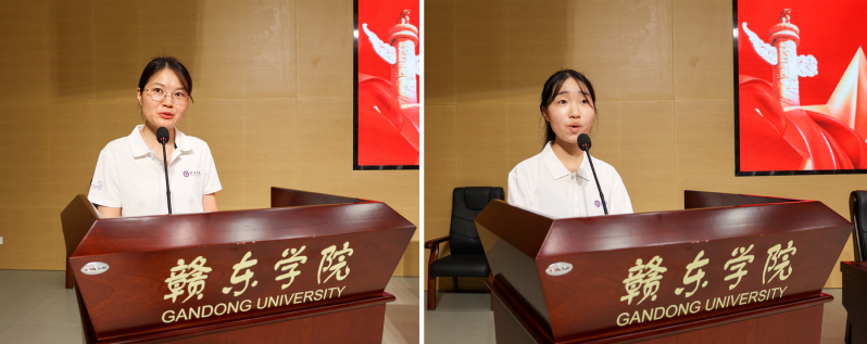 暑期“三下乡”社会实践团队指导老师代表李惠惠,学生代表江星语进行发言。