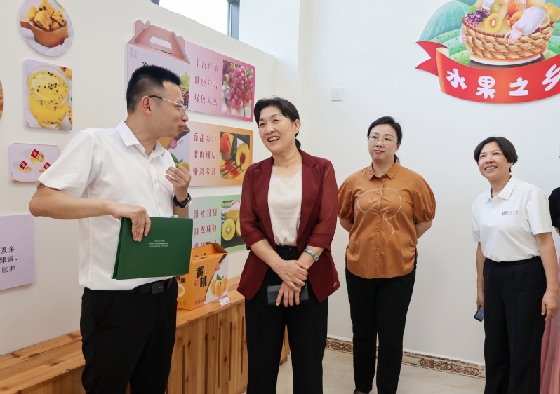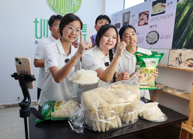 陈克胜一行首先抵达宜黄县圳口乡直播基地,看望慰问在此实践的人文学院“人文团青”服务队师生。时值服务队实践第五日,师生们正开展“助力农产品视频拍摄与直播带货”活动。陈克胜与师生亲切交流,详细询问实践进展、生活保障及收获感悟,高度赞扬同学们将专业知识融入乡村电商发展、服务特色产业的实干精神。