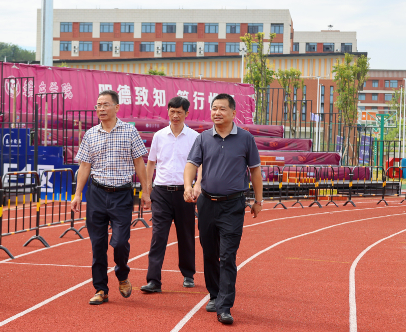 刘云海一行深入体育场,详细了解场地维护、安保措施、观众服务、医疗应急等各项准备工作,并对赛事组织、后勤保障等环节提出明确要求。刘云海强调,要高度重视赛事安全与秩序,以高标准、严要求做好各项服务工作,展现学校良好的办赛水平和精神风貌,为所有运动员、裁判员及观众营造专业、安全、热烈的竞赛环境。