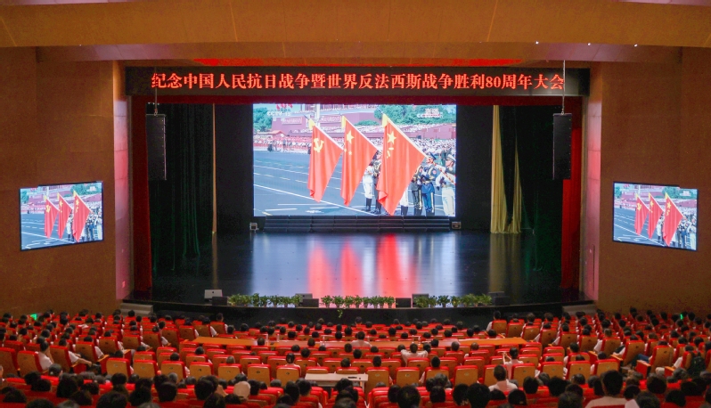 9月3日,纪念中国人民抗日战争暨世界反法西斯战争胜利80周年大会在北京天安门广场隆重举行,中共中央总书记、国家主席、中央军委主席习近平发表重要讲话并检阅受阅部队。赣东学院在家校领导刘云海、茶金学、魏文攻、李勋和师生代表800余人在大学生活动中心千人大礼堂集中收听收看了盛况直播。
