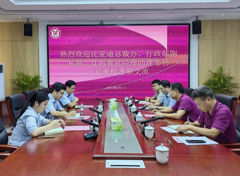9月2日下午,比亚迪江西省总经理助理邹杨一行来校考察交流,重点围绕学生实习基地建设、人才培养与输送等核心议题展开深入洽谈。校党委副书记、校长刘云海出席,教务处、信息工程学院、机械与电子工程学院等相关单位负责人共同参加座谈。