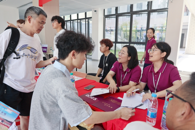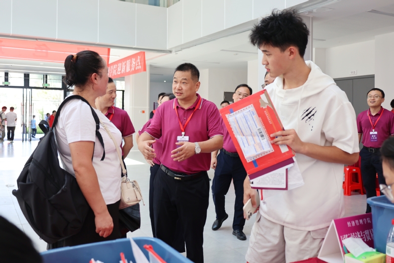 与新生及家长亲切交流
