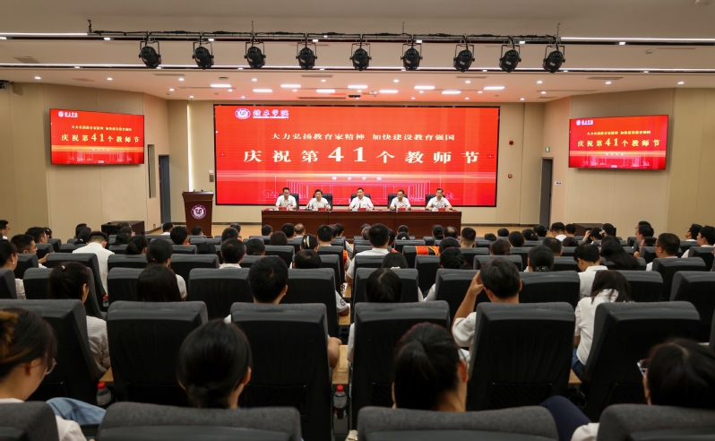 金秋九月,师道巍巍。9月9日下午,我校在明德楼报告厅举行庆祝第41个教师节暨“三育人”大会。校党委副书记、校长刘云海出席并讲话,在校校领导班子成员、受表彰的先进集体与个人、教师代表等近200人齐聚一堂,共庆节日。