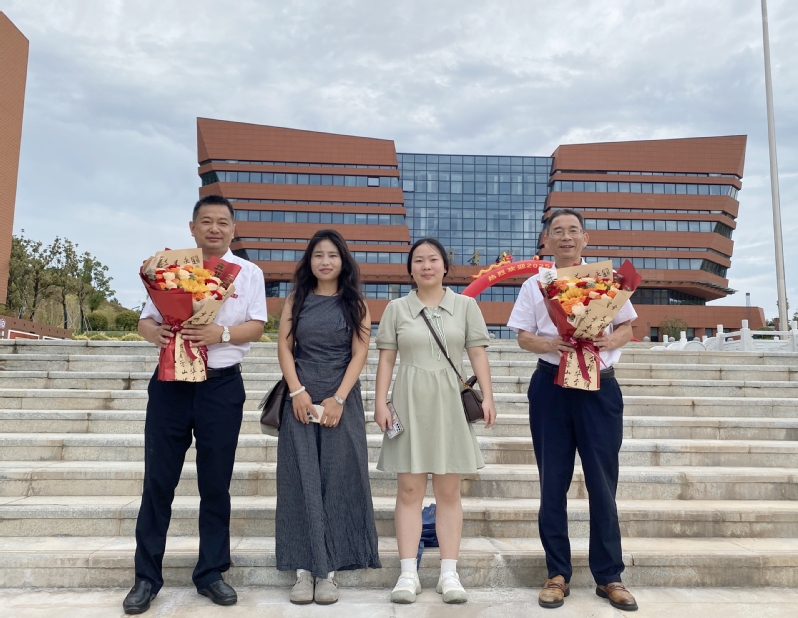 教师节当天,2025届已毕业的两位学生返回母校,向校党委副书记、校长刘云海和党委委员、副校长茶金学送上鲜花,表达对恩师的感激之情和节日祝福,展现了深厚的师生情谊。