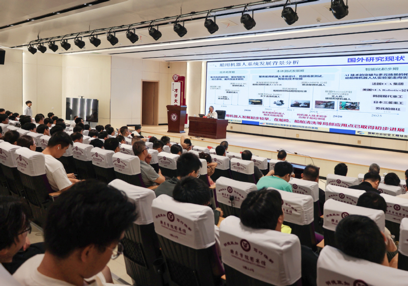 中国工程院院士、武汉理工大学教授严新平以《船用机器人系统研究现状与展望》为题,从船用机器人系统发展背景切入,讲述船用机器人系统的前沿应用、智能航运系统的协同发展及技术挑战与突破方向。他表示,在交通强国战略的支持下,船用机器人正朝“绿色、智能、数字”方向突破,中国智能船舶产业链正在加速完善,有望在未来智能航运领域占据重要地位。